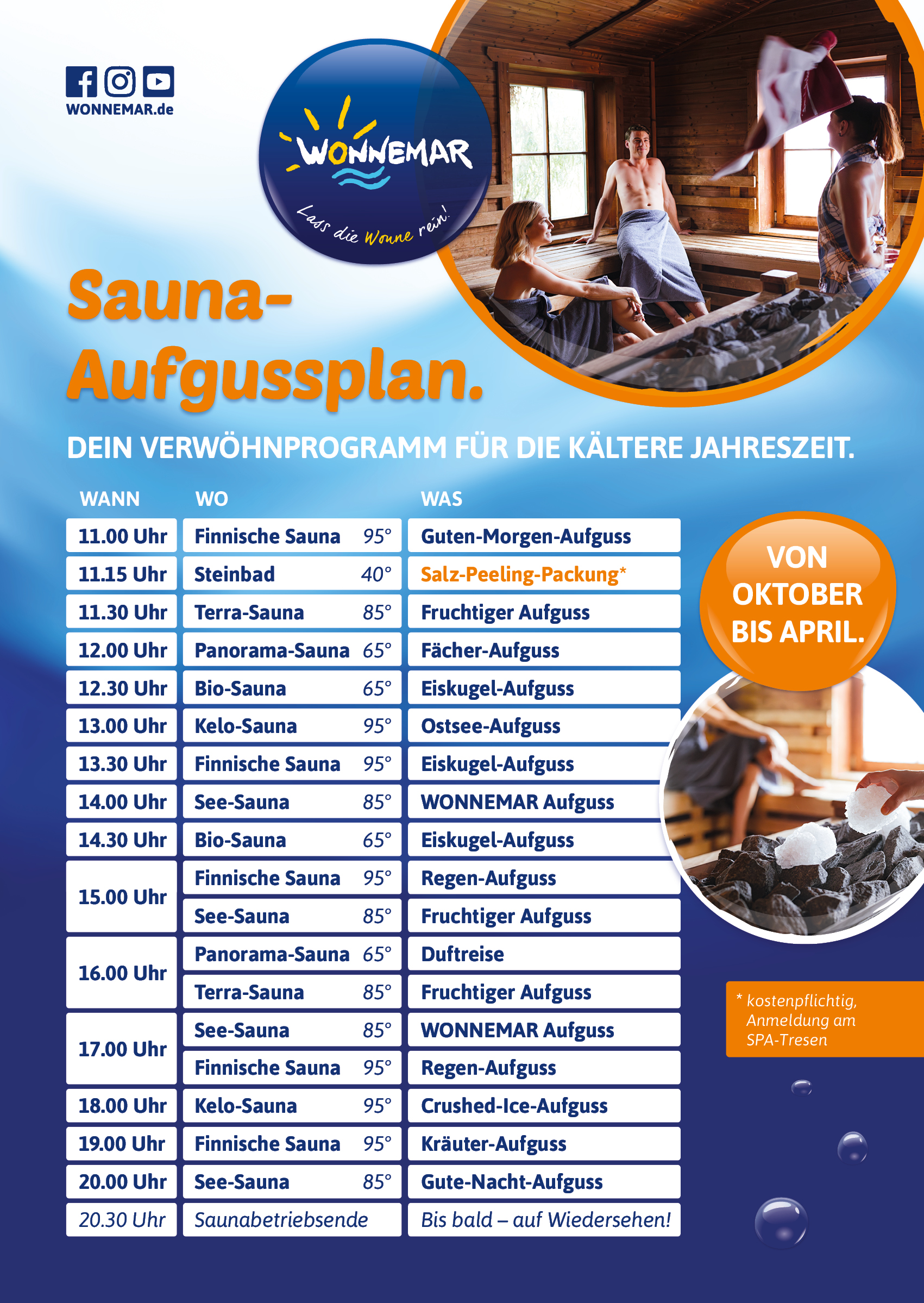 Das Leben ist ein Fest. Wir zelebrieren ein umfassendes Aufgussprogramm für dich in der WONNEMAR Saunawelt.